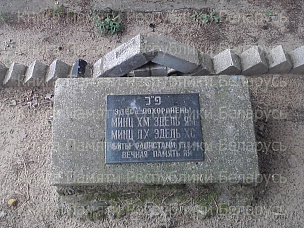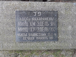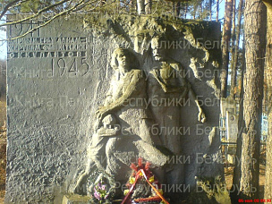 Памятник-стела с барельефом из мраморной крошки. "1941 - 1945. Мирным гражданам - жертвам фашистских оккупантов". Точное количество захороненных не установлено